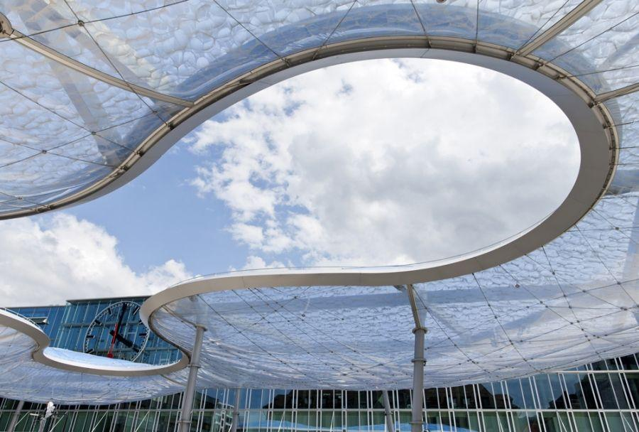 ETFE behaves differently. It can be shaped, molded, and adapted without the same level of cost escalation. This allows architects to explore more expressive forms without constantly worrying about fabrication constraints.